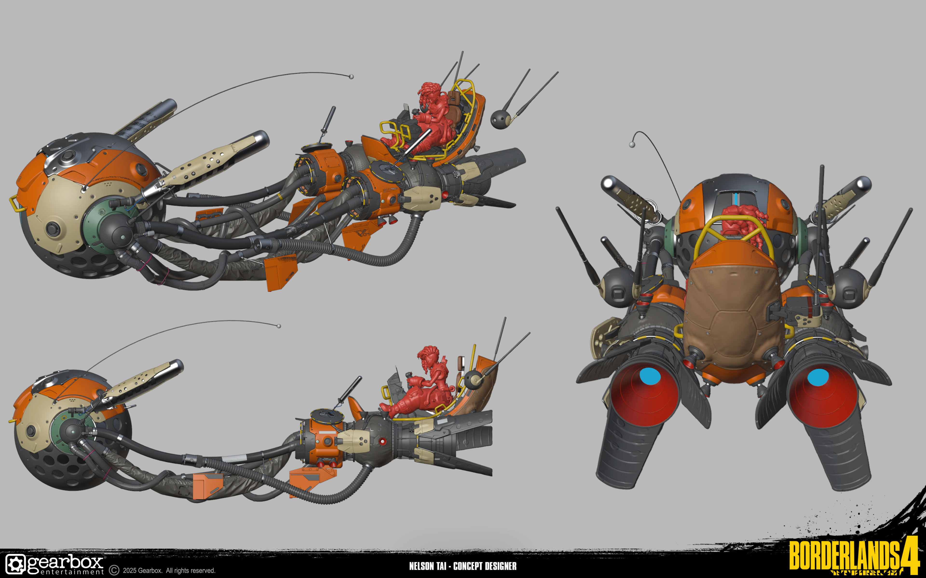Had a lot of fun designing a few vehicles for Borderlands 4 and this was definitely my favorite one to do! Amazing work to all the talented artists involved to translate this into the distinct Borderlands style in the game.