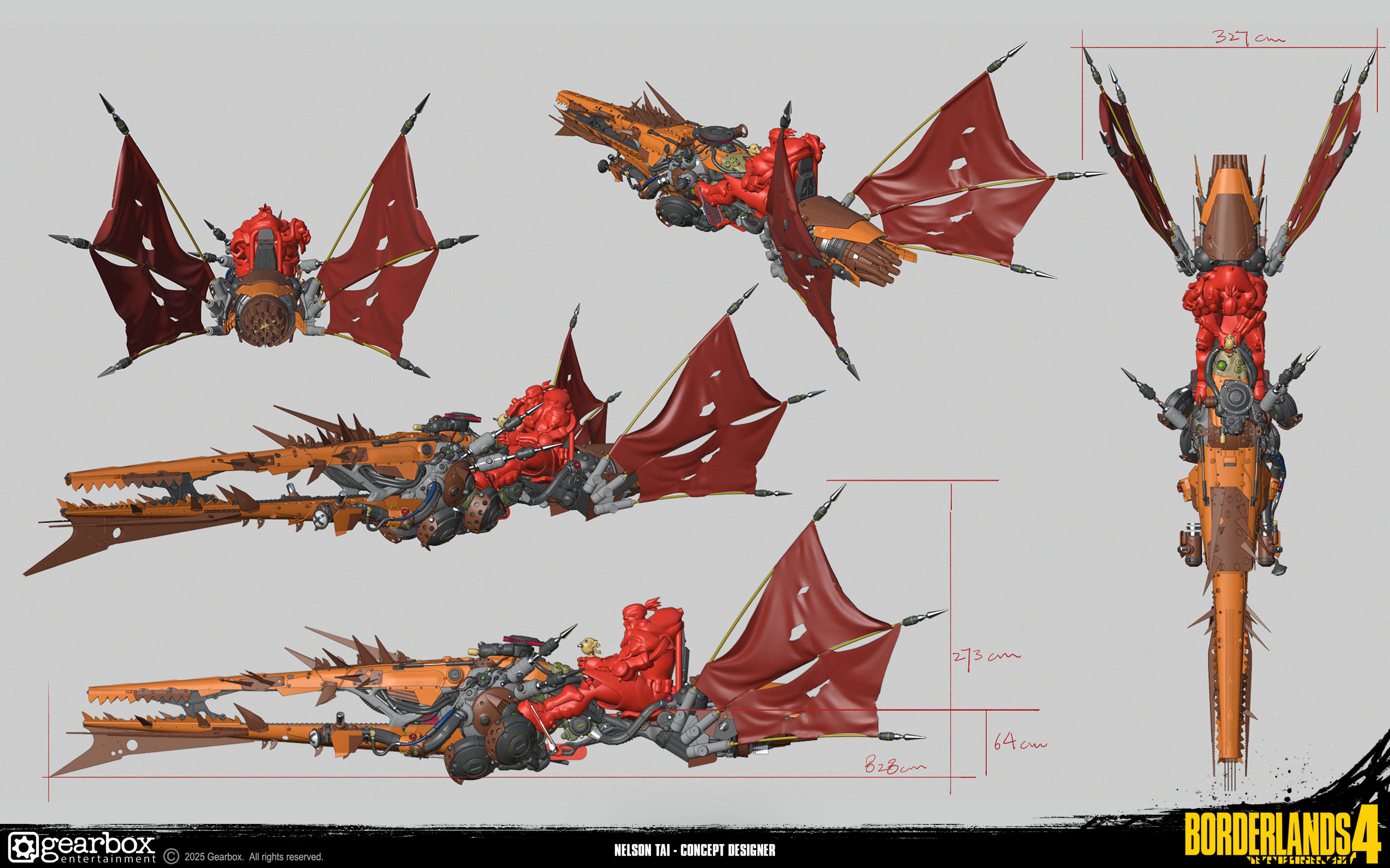 Had an amazing time designing few vehicle concepts for Borderlands 4. It was a lot of fun to work out this concept and eventually come to this dragon-like look!